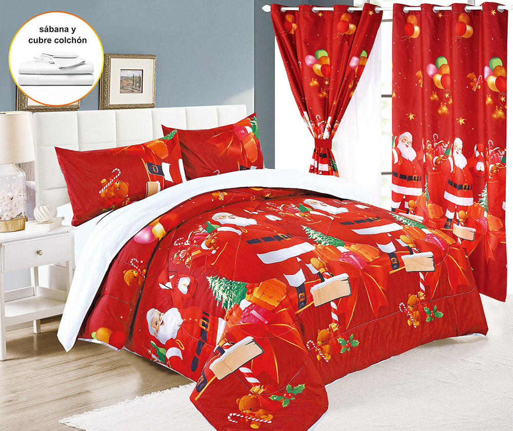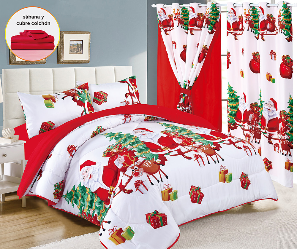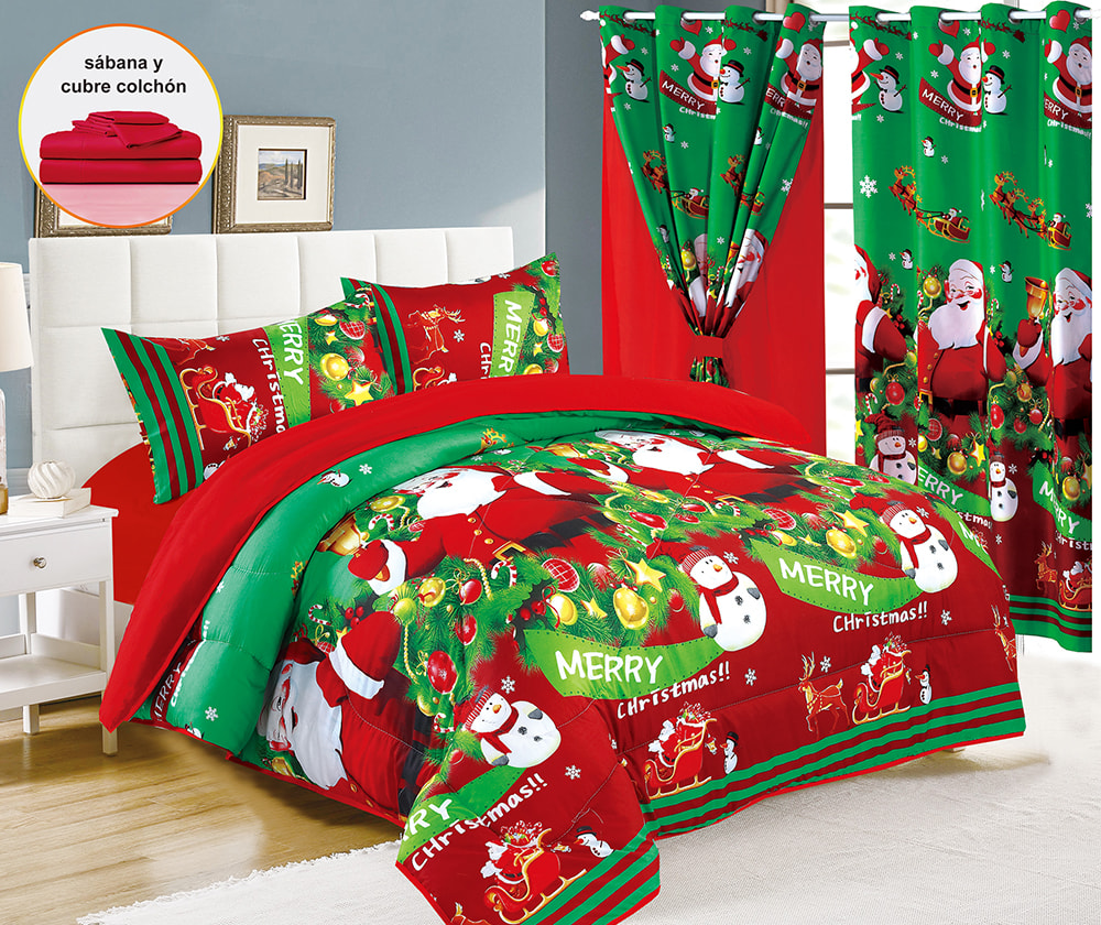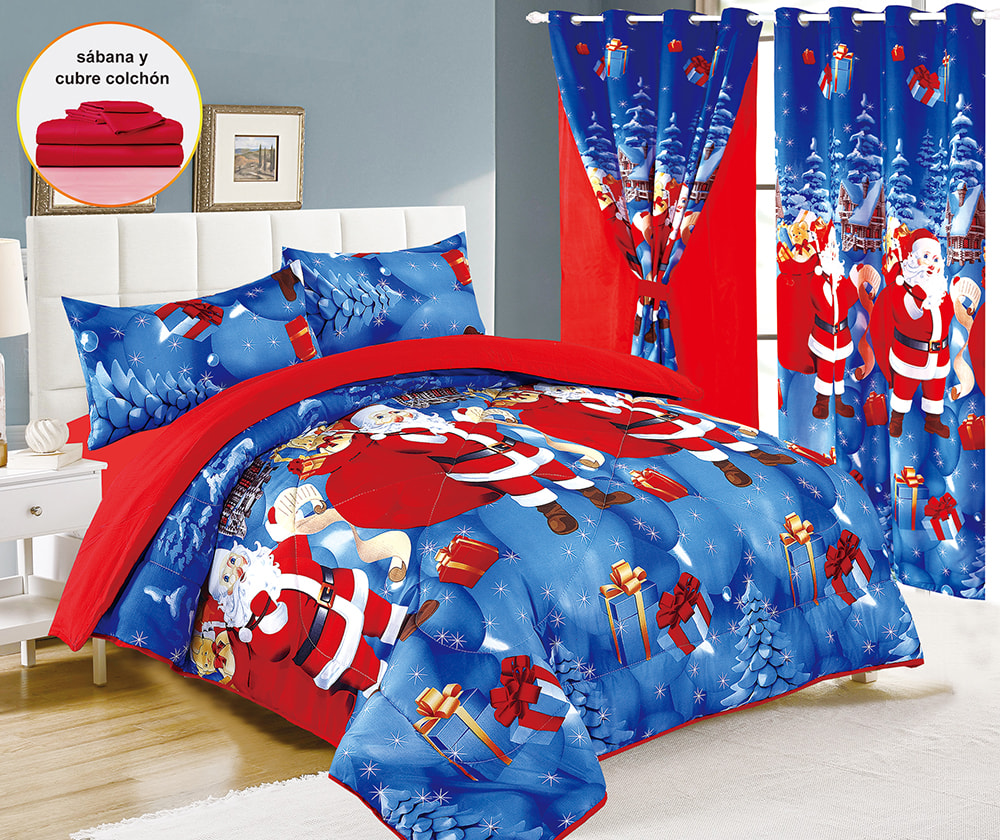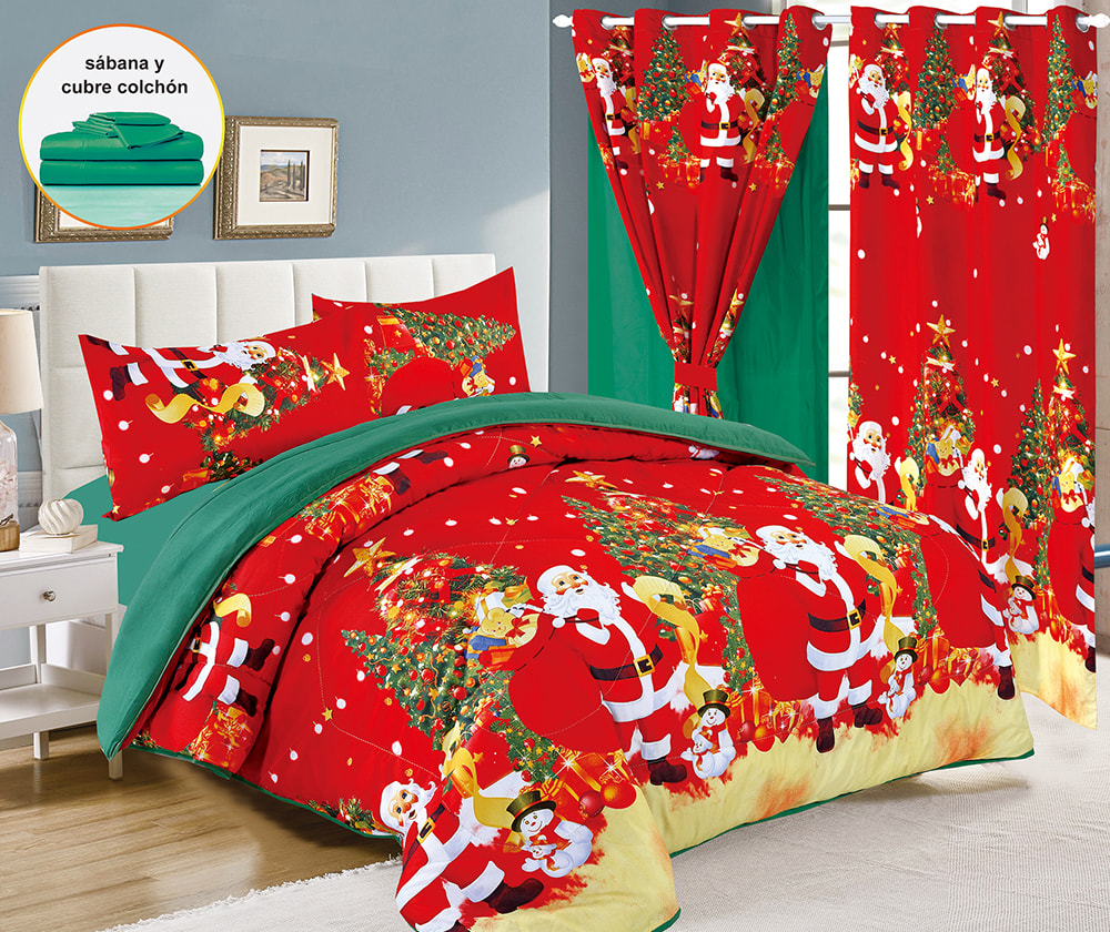 | طقم لحاف عيد الميلاد مكون من 7 قطع مع ستائر مزدوجة | طقم مفروشات عيد الميلاد، طقم لحاف مطبوع بالألوان، طقم لحاف من 7 قطع، مع ستارة مزدوجة من البوليستر المصنوع من الألياف الدقيقة بنسبة 100%، طقم ملاءات فاخر، أصلي، نسيج منزلي | 100% بوليستر | مقاس الملكة | اللحاف: 223*228 سم 1 قطعة |